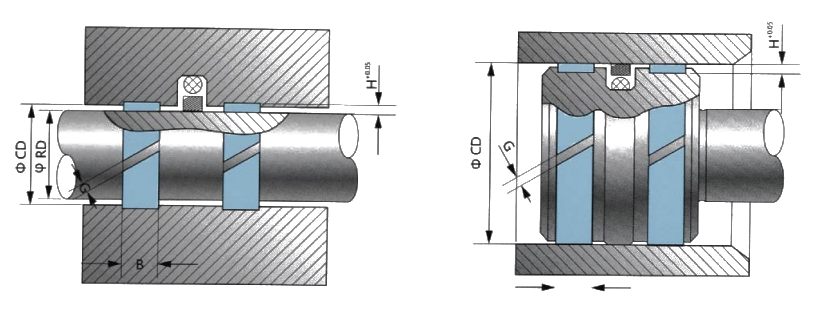 | Materiale | Ydre diameter tolerance CD | Indvendig diameter tolerance d | Vægtykkelsestolerance H | Breddetolerance B | Indsnit OD CD | Indsnit G | Indsnitstolerancer |
