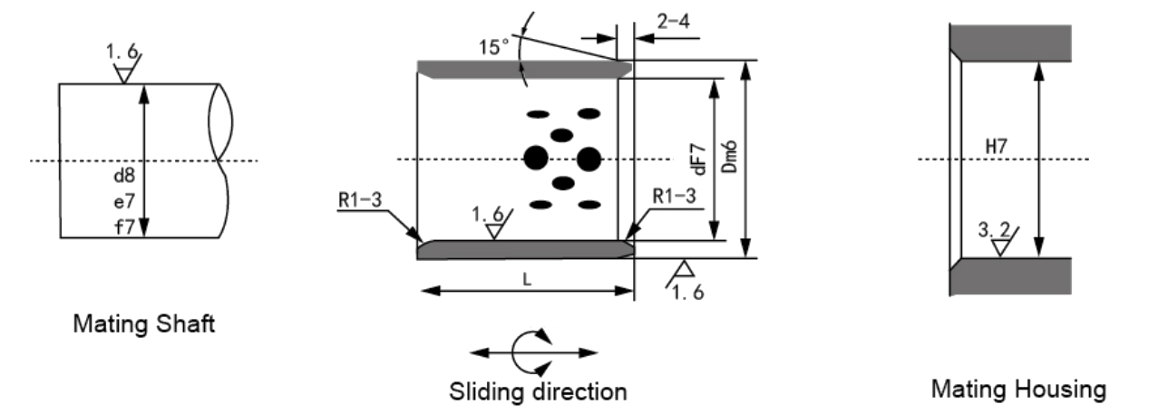 | JDB-3 | Det indvendige sidemateriale af produkter i JDB-3-serien er det fornuftige som det i JDB-2-serien. så de kunne fungere lige så godt som JDB-2-serien. i yderligere. De har andre fordele såsom at spare materialeomkostninger, forbedre trykstyrken og at de kan samles ved at svejse bøsningens overflade sammen med anden matrix. De er velegnede til dele, der ikke behøver oliesmøring på entreprenørmaskiner, metallurgimaskiner og transportmaskiner. |